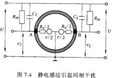 Rc和Rm并聯(lián),如果Rm>>Rc,則得總阻抗R約為Rc。這樣,R和內阻Rs/2對勵磁電壓U進(jìn)行分壓,在電極上將得到由分布電容Cf串進(jìn)的干擾電壓e2為