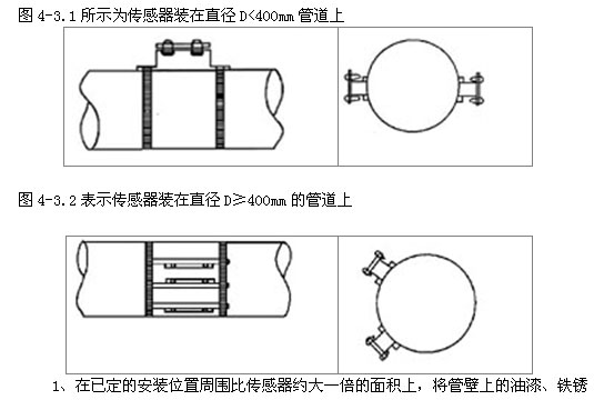 安裝位置的選擇 由于傳感器的安裝位置,被測管路的狀態(tài)對測量精度有很大影響,因此請選擇滿(mǎn)足下列條件的場(chǎng)所。 管道圓度好,內表面光滑,管壁均勻。 上游側10D,下游側3D以上的直管段,注“D為管道內徑”。 被測管路必須充滿(mǎn)液體。 必須有足夠的空間易于傳感器的安裝與操作。 在水平的被測管路,傳感器不應裝在管道的頂部和底部,并避開(kāi)管道凹凸不平及有焊縫處。 |