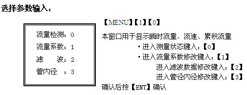 接線(xiàn)盒接線(xiàn)方法: 先將接線(xiàn)盒蓋上的四個(gè)固定螺絲擰下,蓋取下; 將要接的電纜線(xiàn)從接線(xiàn)盒單孔內穿入; 需接的電纜線(xiàn)線(xiàn)色與原來(lái)盒內接線(xiàn)端子的電纜顏色相對應。 按鍵與顯示 LDZ-2采用四行背景光液晶顯示,薄膜按鍵輸入,為客戶(hù)提供數據顯示和人機對話(huà)。 操作說(shuō)明 1.輸入內容和步驟 LDZ-2型流量計常規測量時(shí)需輸入下列參數: 流量檢測:進(jìn)入測量顯示窗口 流量系數:300(出廠(chǎng)已設定) 濾波系數:50(出廠(chǎng)已設定) 管道內徑:用戶(hù)根據測量現場(chǎng)的實(shí)際管內徑輸入,單位mm,按【ENT】確認 上述參數條件的輸入步驟一般遵循下列快速設置步驟順序:(【】中表示對應按鍵) 鍵入【MENU】【1】【0】進(jìn)入M10窗口選擇顯示測量方式【ENT】 鍵入【0】進(jìn)入流量檢測窗口,流量檢測:進(jìn)入測量顯示窗口 鍵入【1】進(jìn)入流量系數:300【ENT】 鍵入【2】進(jìn)入濾波系數:50【ENT】 鍵入【3】進(jìn)入管內徑設定,用戶(hù)根據測量現場(chǎng)的實(shí)際管內徑輸入,單位mm,按【ENT】確認 6. 欲在主菜單中向下移動(dòng),鍵入上下鍵 |